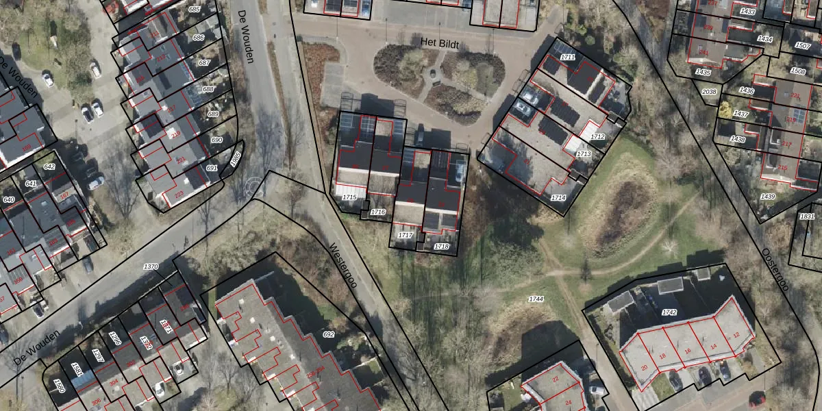 Gebruik de zoekbalk of klik op een perceel voor informatie over de adressen binnen dit perceel.