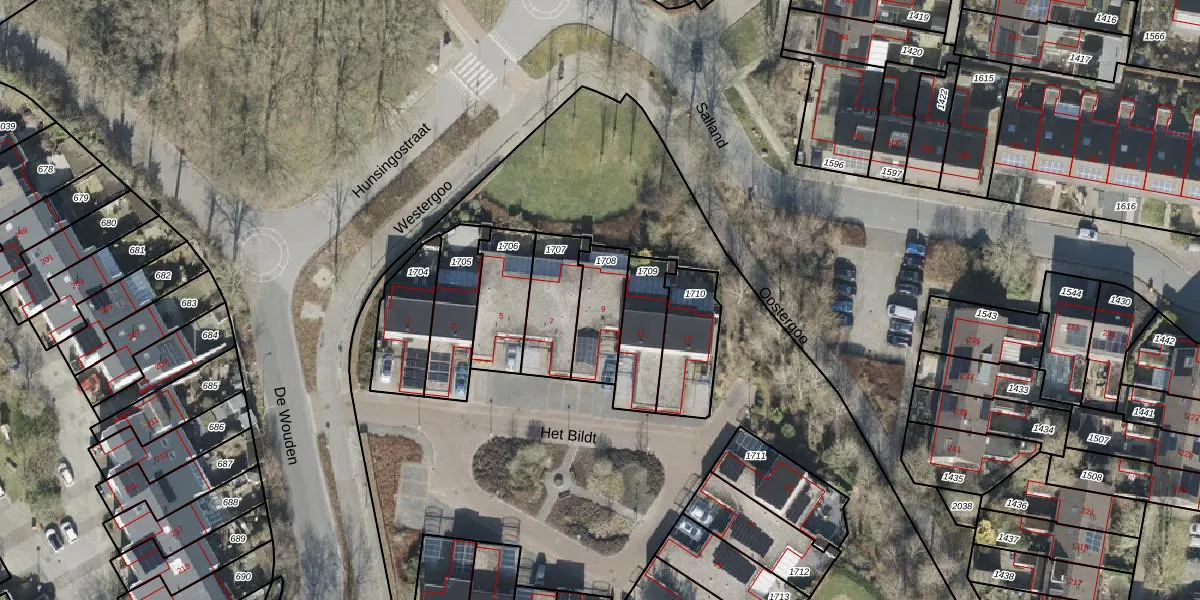 Gebruik de zoekbalk of klik op een perceel voor informatie over de adressen binnen dit perceel.