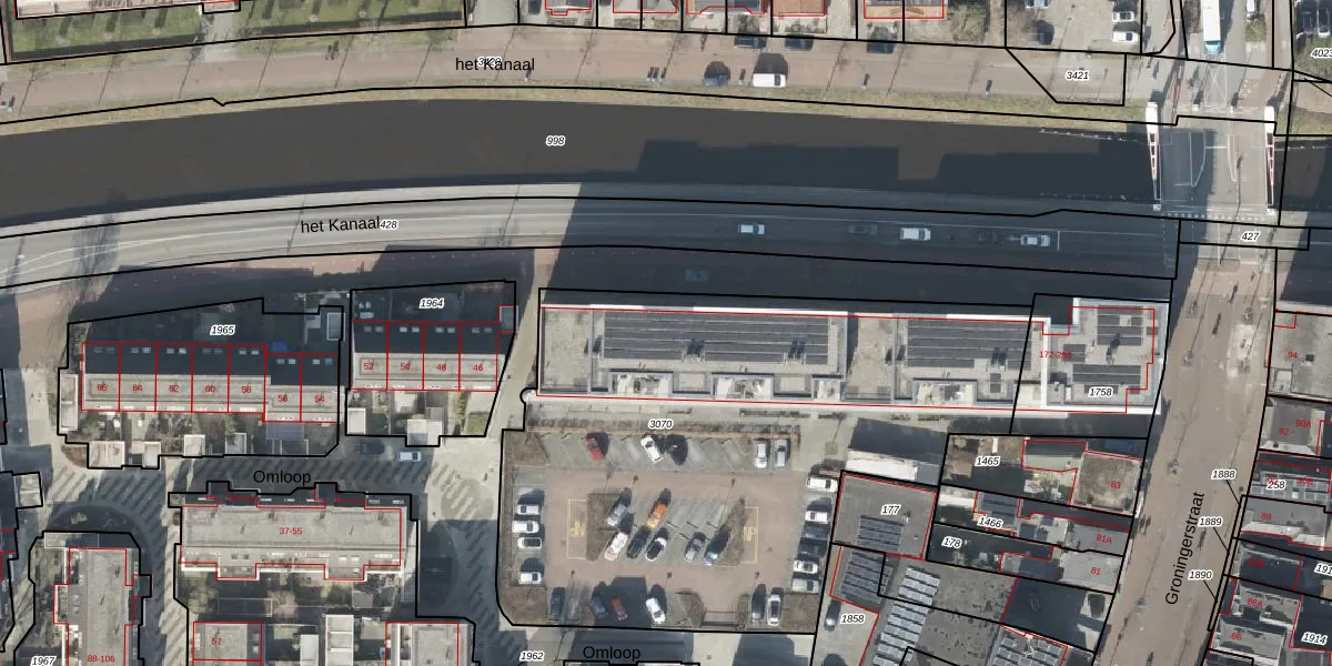 Het perceel waarop het Kanaal 182 staat heeft een oppervlakte van 3070 m². Dit is een zeer groot perceel. De perceeloppervlakte wordt geregistreerd door het Kadaster. Gedetailleerde informatie over de maten van dit perceel kunt u vinden in het rapport Kadastrale kaart met maatvoering van het Kanaal 182.