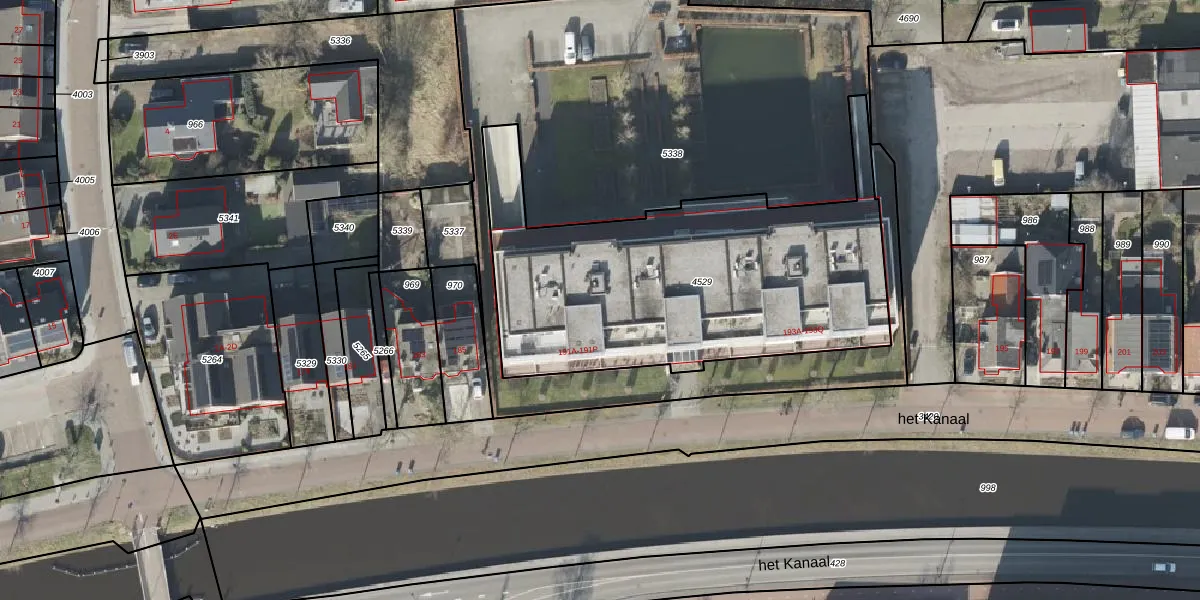 Het perceel waarop het Kanaal 191-O staat heeft een oppervlakte van 1800 m². Dit is een zeer groot perceel. De perceeloppervlakte wordt geregistreerd door het Kadaster. Gedetailleerde informatie over de maten van dit perceel kunt u vinden in het rapport Kadastrale kaart met maatvoering van het Kanaal 191-O.