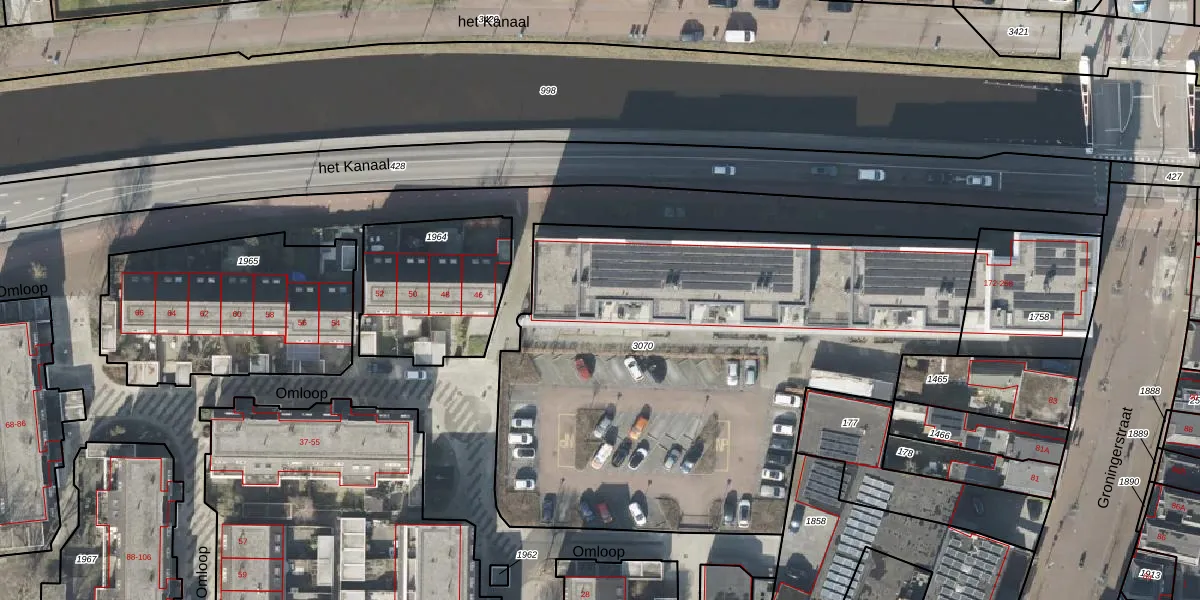 Het perceel waarop het Kanaal 254 staat heeft een oppervlakte van 3070 m². Dit is een zeer groot perceel. De perceeloppervlakte wordt geregistreerd door het Kadaster. Gedetailleerde informatie over de maten van dit perceel kunt u vinden in het rapport Kadastrale kaart met maatvoering van het Kanaal 254.