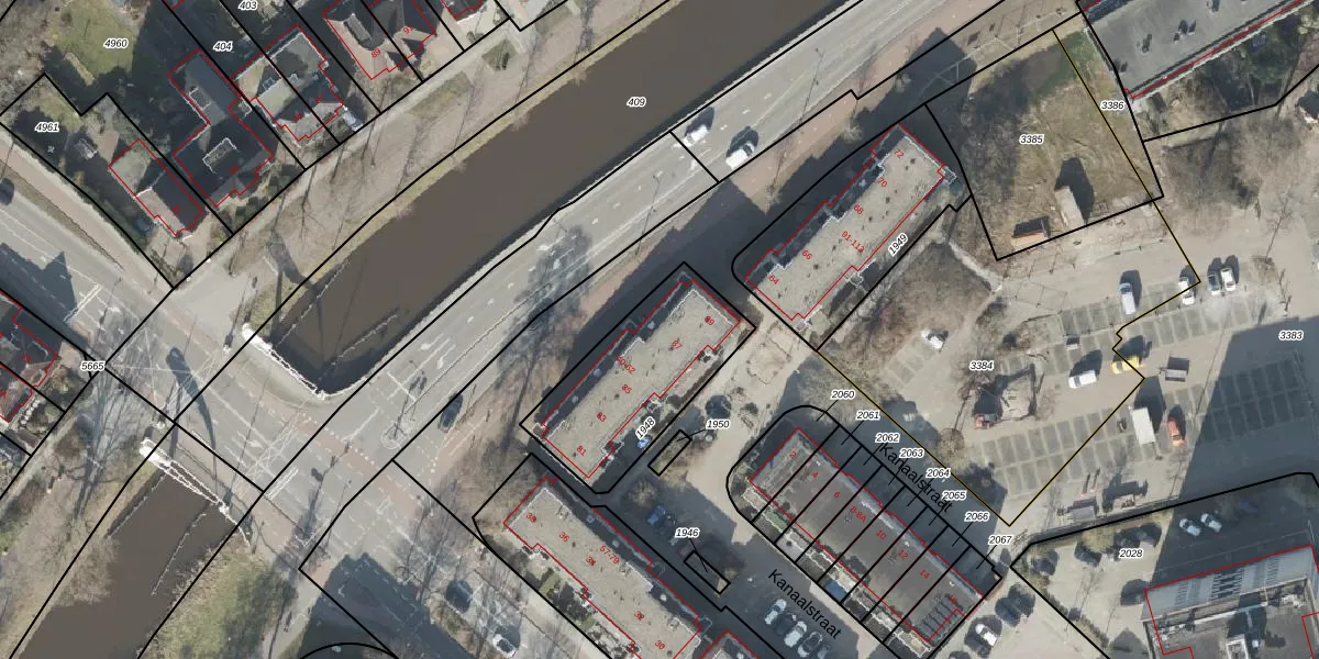 Het perceel waarop het Kanaal 56 staat heeft een oppervlakte van 564 m². Dit is een groot perceel. De perceeloppervlakte wordt geregistreerd door het Kadaster. Gedetailleerde informatie over de maten van dit perceel kunt u vinden in het rapport Kadastrale kaart met maatvoering van het Kanaal 56.