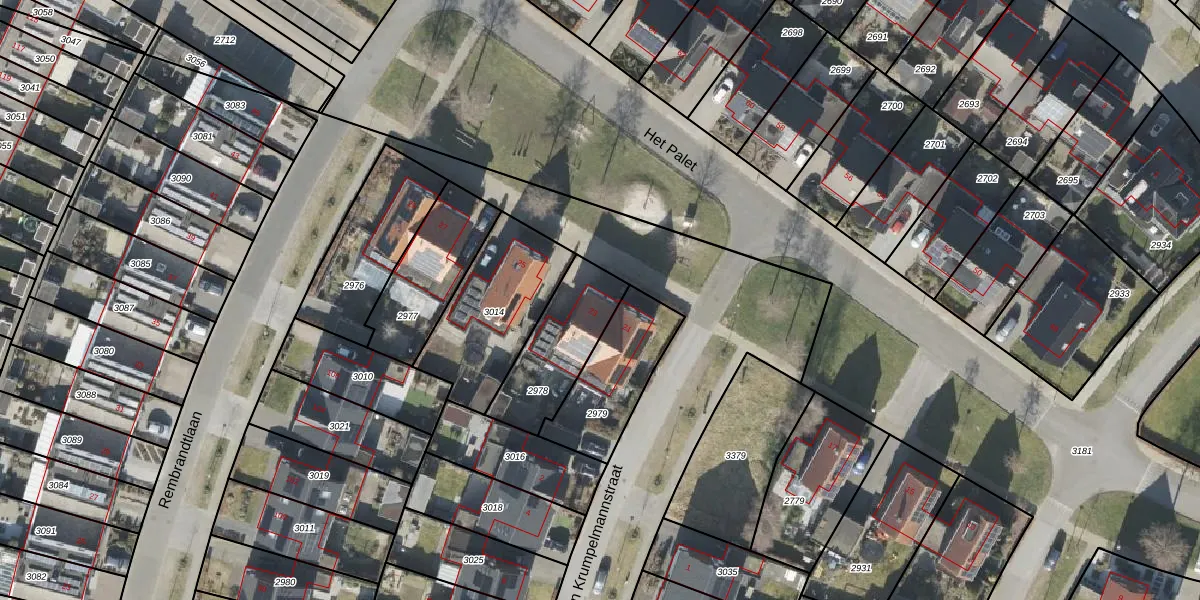 Het perceel waarop Het Palet 23 staat heeft een oppervlakte van 308 m². Dit is een groot perceel. De perceeloppervlakte wordt geregistreerd door het Kadaster. Gedetailleerde informatie over de maten van dit perceel kunt u vinden in het rapport Kadastrale kaart met maatvoering van Het Palet 23.
