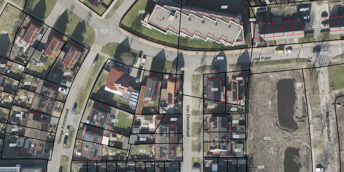 Het perceel waarop Het Palet 5 staat heeft een oppervlakte van 250 m². Dit is een middelgroot perceel. De perceeloppervlakte wordt geregistreerd door het Kadaster. Gedetailleerde informatie over de maten van dit perceel kunt u vinden in het rapport Kadastrale kaart met maatvoering van Het Palet 5.