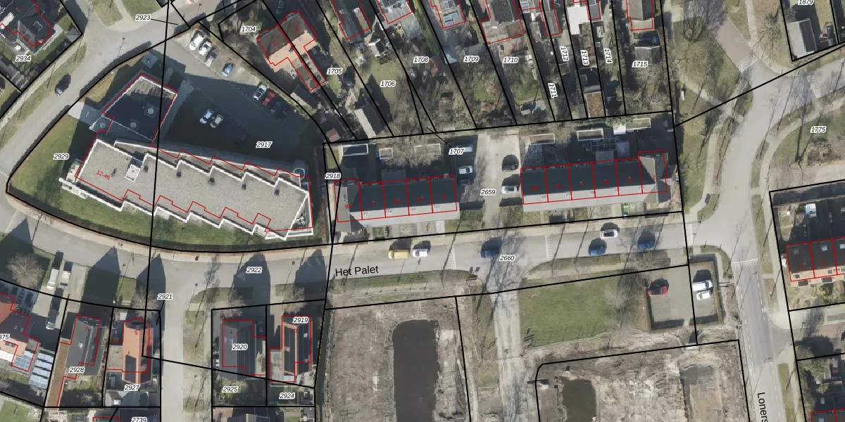 Het perceel waarop Het Palet 6-A staat heeft een oppervlakte van 1966 m². Dit is een zeer groot perceel. De perceeloppervlakte wordt geregistreerd door het Kadaster. Gedetailleerde informatie over de maten van dit perceel kunt u vinden in het rapport Kadastrale kaart met maatvoering van Het Palet 6-A.