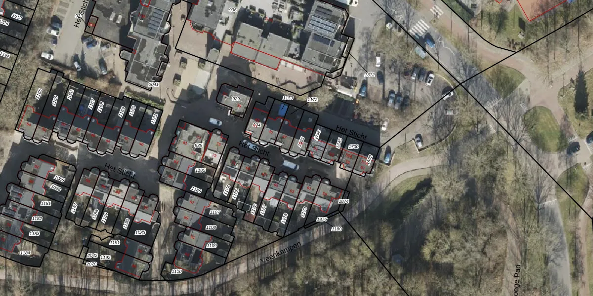 Gebruik de zoekbalk of klik op een perceel voor informatie over de adressen binnen dit perceel.