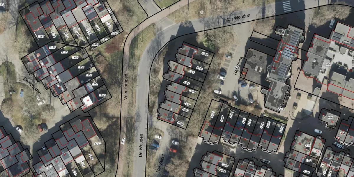 Gebruik de zoekbalk of klik op een perceel voor informatie over de adressen binnen dit perceel.