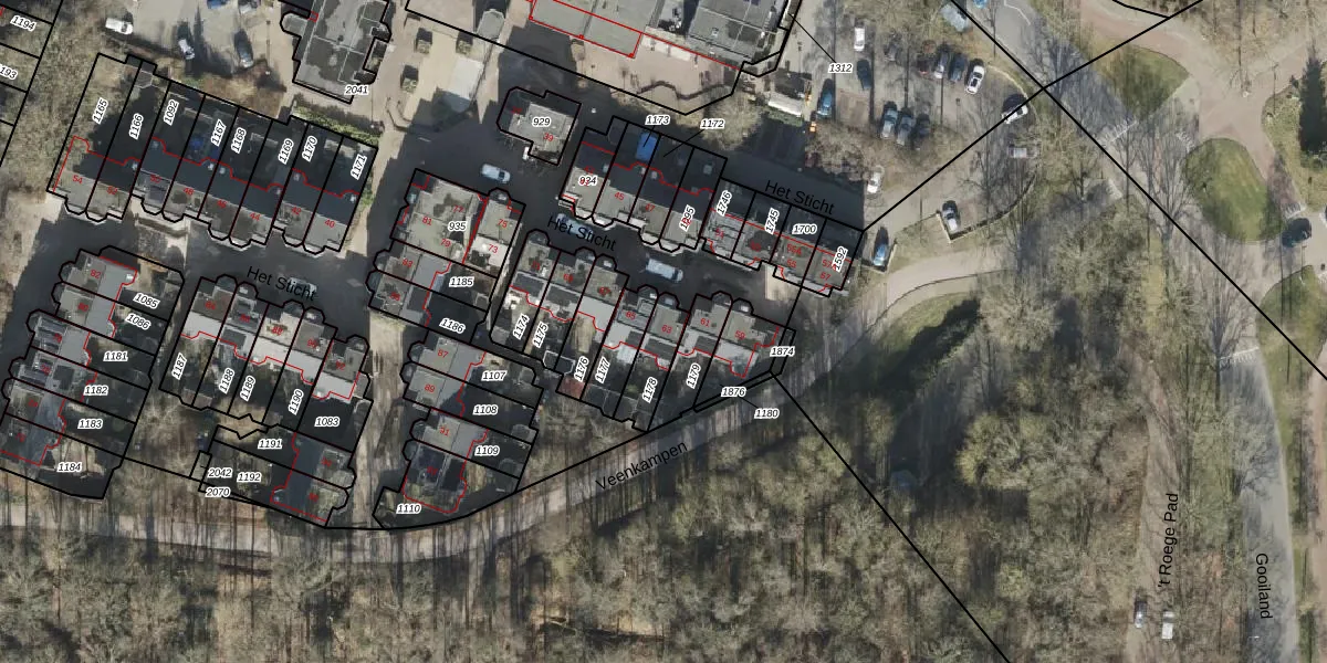 Gebruik de zoekbalk of klik op een perceel voor informatie over de adressen binnen dit perceel.