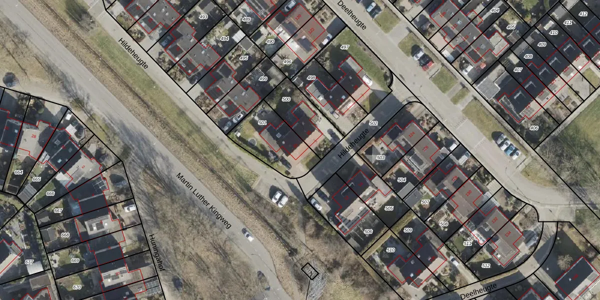 Het perceel waarop Hildeheugte 33 staat heeft een oppervlakte van 399 m². Dit is een groot perceel. De perceeloppervlakte wordt geregistreerd door het Kadaster. Gedetailleerde informatie over de maten van dit perceel kunt u vinden in het rapport Kadastrale kaart met maatvoering van Hildeheugte 33.