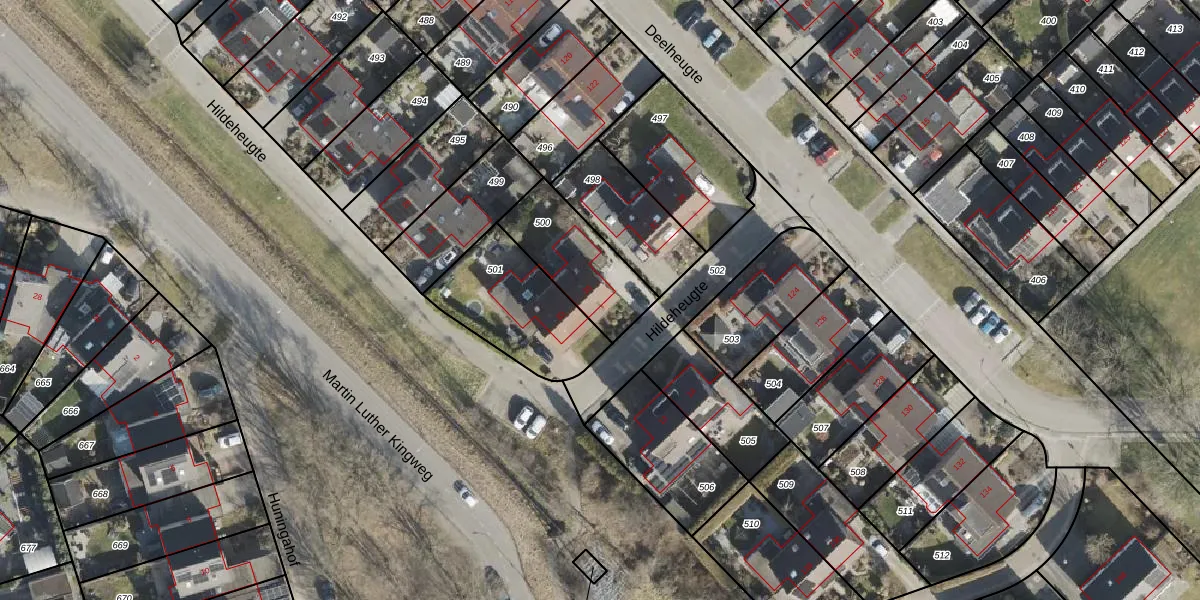 Het perceel waarop Hildeheugte 35 staat heeft een oppervlakte van 304 m². Dit is een groot perceel. De perceeloppervlakte wordt geregistreerd door het Kadaster. Gedetailleerde informatie over de maten van dit perceel kunt u vinden in het rapport Kadastrale kaart met maatvoering van Hildeheugte 35.