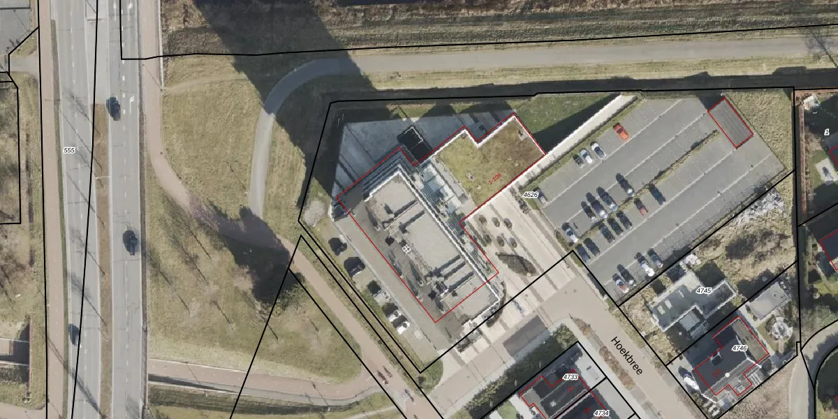 Het perceel waarop Hoekbree 47 staat heeft een oppervlakte van 5110 m². Dit is een zeer groot perceel. De perceeloppervlakte wordt geregistreerd door het Kadaster. Gedetailleerde informatie over de maten van dit perceel kunt u vinden in het rapport Kadastrale kaart met maatvoering van Hoekbree 47.