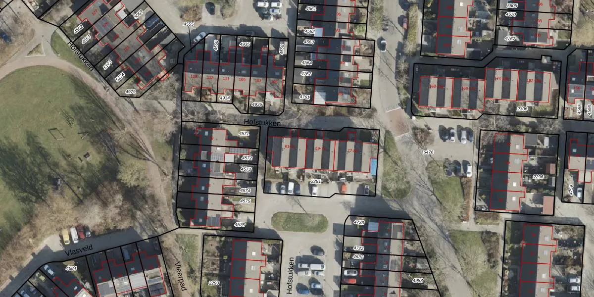 Het perceel waarop Hofstukken 63 staat heeft een oppervlakte van 624 m². Dit is een groot perceel. De perceeloppervlakte wordt geregistreerd door het Kadaster. Gedetailleerde informatie over de maten van dit perceel kunt u vinden in het rapport Kadastrale kaart met maatvoering van Hofstukken 63.