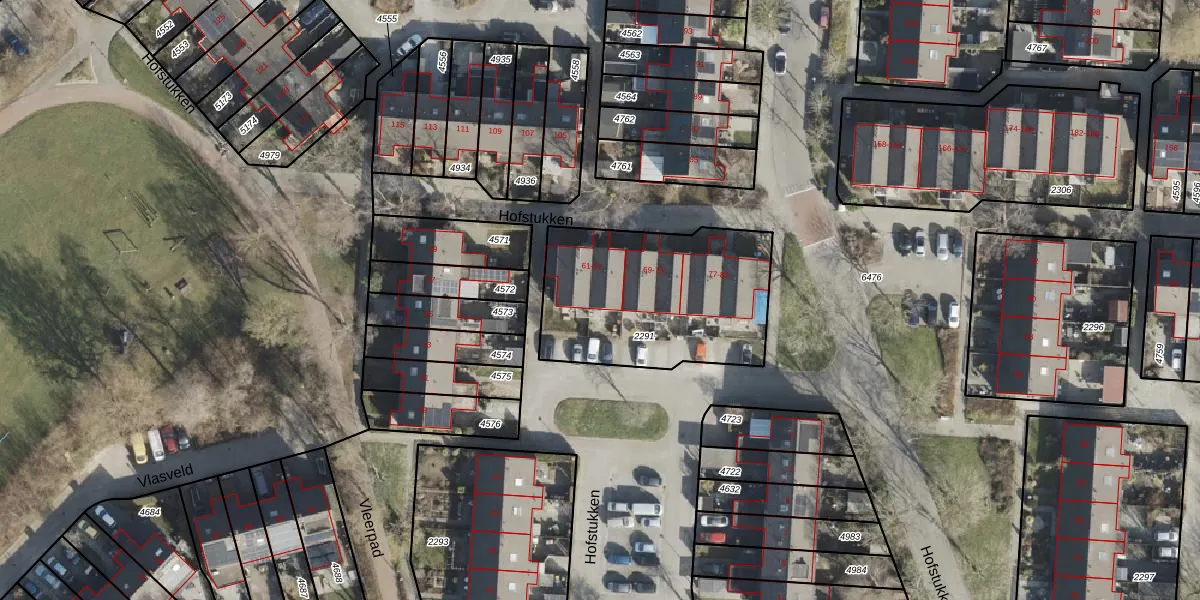 Het perceel waarop Hofstukken 67 staat heeft een oppervlakte van 624 m². Dit is een groot perceel. De perceeloppervlakte wordt geregistreerd door het Kadaster. Gedetailleerde informatie over de maten van dit perceel kunt u vinden in het rapport Kadastrale kaart met maatvoering van Hofstukken 67.