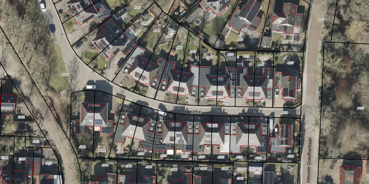 Het perceel waarop Holthe 12 staat heeft een oppervlakte van 355 m². Dit is een groot perceel. De perceeloppervlakte wordt geregistreerd door het Kadaster. Gedetailleerde informatie over de maten van dit perceel kunt u vinden in het rapport Kadastrale kaart met maatvoering van Holthe 12.