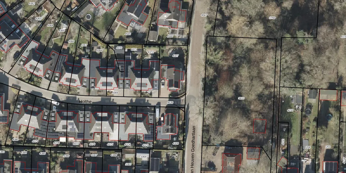 Gebruik de zoekbalk of klik op een perceel voor informatie over de adressen binnen dit perceel.