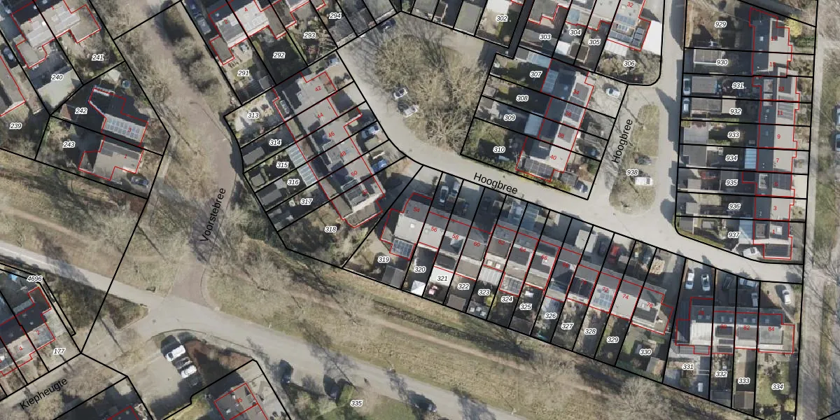 Het perceel waarop Hoogbree 54 staat heeft een oppervlakte van 295 m². Dit is een middelgroot perceel. De perceeloppervlakte wordt geregistreerd door het Kadaster. Gedetailleerde informatie over de maten van dit perceel kunt u vinden in het rapport Kadastrale kaart met maatvoering van Hoogbree 54.