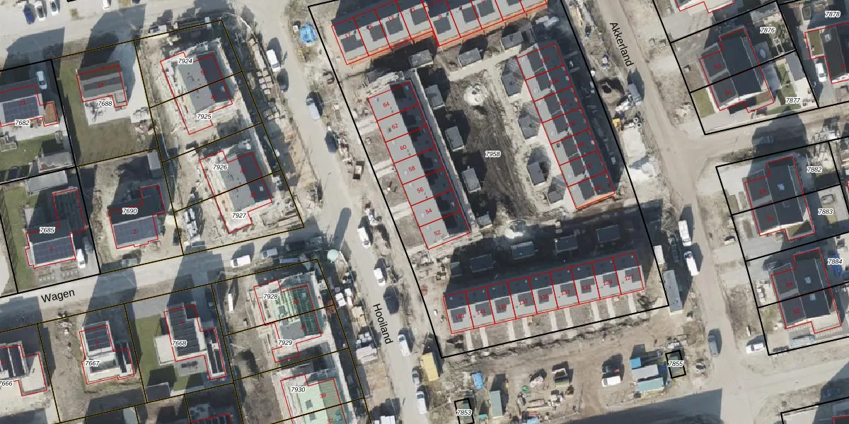 Het perceel waarop Hooiland 54 staat heeft een oppervlakte van 4927 m². Dit is een zeer groot perceel. De perceeloppervlakte wordt geregistreerd door het Kadaster. Gedetailleerde informatie over de maten van dit perceel kunt u vinden in het rapport Kadastrale kaart met maatvoering van Hooiland 54.