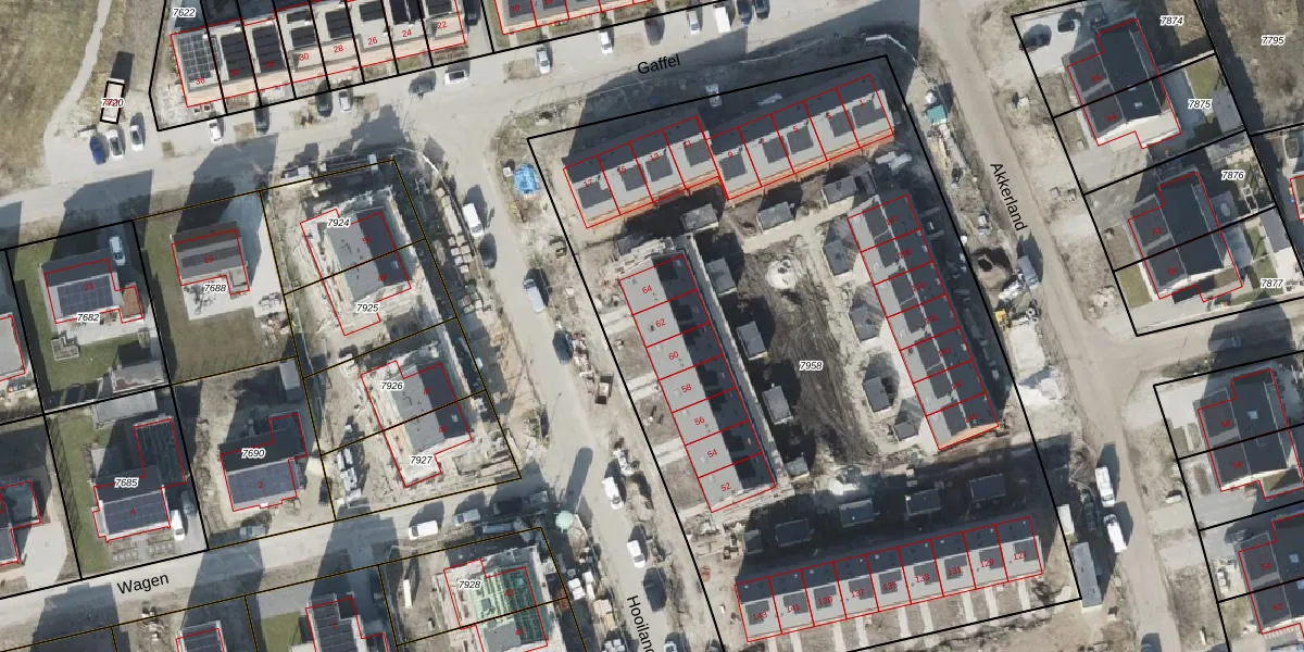 Het perceel waarop Hooiland 62 staat heeft een oppervlakte van 4927 m². Dit is een zeer groot perceel. De perceeloppervlakte wordt geregistreerd door het Kadaster. Gedetailleerde informatie over de maten van dit perceel kunt u vinden in het rapport Kadastrale kaart met maatvoering van Hooiland 62.