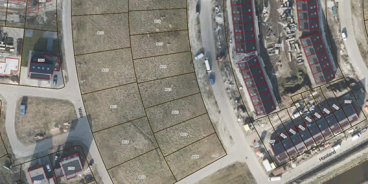 Het perceel waarop Hooiland 7 staat heeft een oppervlakte van 410 m². Dit is een groot perceel. De perceeloppervlakte wordt geregistreerd door het Kadaster. Gedetailleerde informatie over de maten van dit perceel kunt u vinden in het rapport Kadastrale kaart met maatvoering van Hooiland 7.