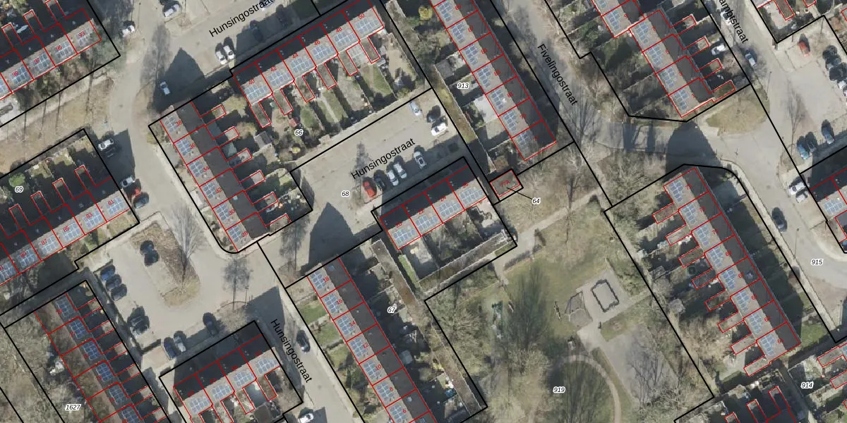 Het perceel waarop Hunsingostraat 22 staat heeft een oppervlakte van 1927 m². Dit is een zeer groot perceel. De perceeloppervlakte wordt geregistreerd door het Kadaster. Gedetailleerde informatie over de maten van dit perceel kunt u vinden in het rapport Kadastrale kaart met maatvoering van Hunsingostraat 22.