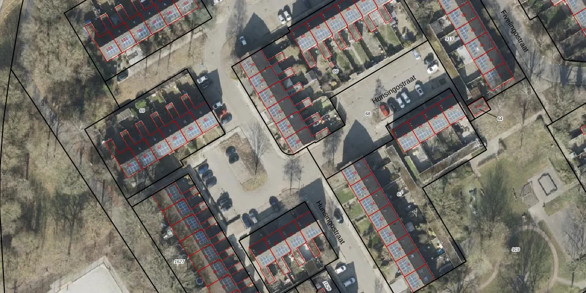 Het perceel waarop Hunsingostraat 28 staat heeft een oppervlakte van 1934 m². Dit is een zeer groot perceel. De perceeloppervlakte wordt geregistreerd door het Kadaster. Gedetailleerde informatie over de maten van dit perceel kunt u vinden in het rapport Kadastrale kaart met maatvoering van Hunsingostraat 28.