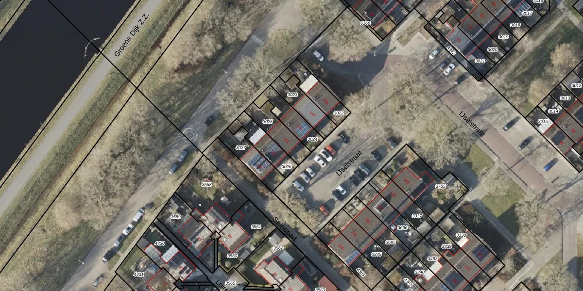 Gebruik de zoekbalk of klik op een perceel voor informatie over de adressen binnen dit perceel.