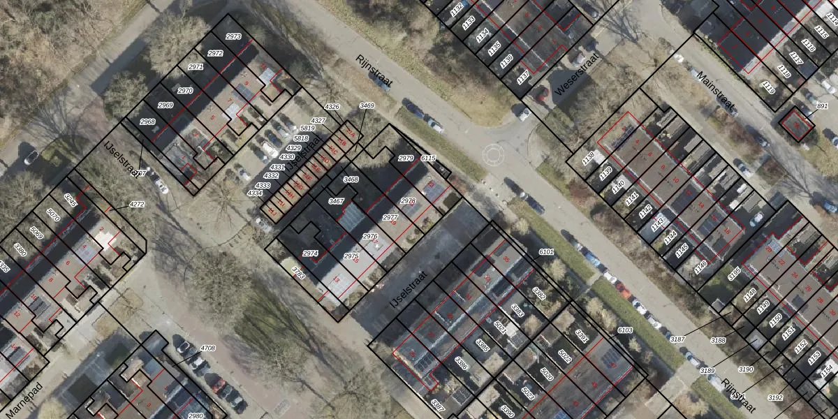 Gebruik de zoekbalk of klik op een perceel voor informatie over de adressen binnen dit perceel.