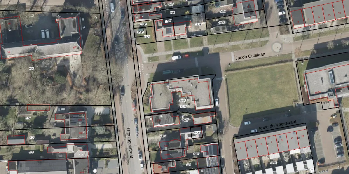 Het perceel waarop Jacob Catslaan 22 staat heeft een oppervlakte van 790 m². Dit is een groot perceel. De perceeloppervlakte wordt geregistreerd door het Kadaster. Gedetailleerde informatie over de maten van dit perceel kunt u vinden in het rapport Kadastrale kaart met maatvoering van Jacob Catslaan 22.