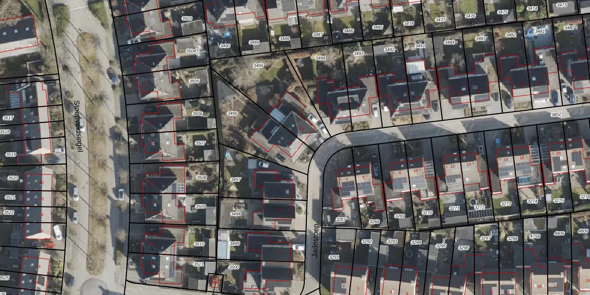 Het perceel waarop Jadestoep 9 staat heeft een oppervlakte van 540 m². Dit is een groot perceel. De perceeloppervlakte wordt geregistreerd door het Kadaster. Gedetailleerde informatie over de maten van dit perceel kunt u vinden in het rapport Kadastrale kaart met maatvoering van Jadestoep 9.