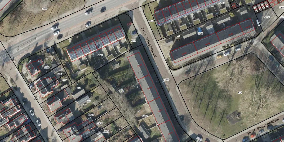 Het perceel waarop J.H.A. Schaperstraat 37 staat heeft een oppervlakte van 2591 m². Dit is een zeer groot perceel. De perceeloppervlakte wordt geregistreerd door het Kadaster. Gedetailleerde informatie over de maten van dit perceel kunt u vinden in het rapport Kadastrale kaart met maatvoering van J.H.A. Schaperstraat 37.