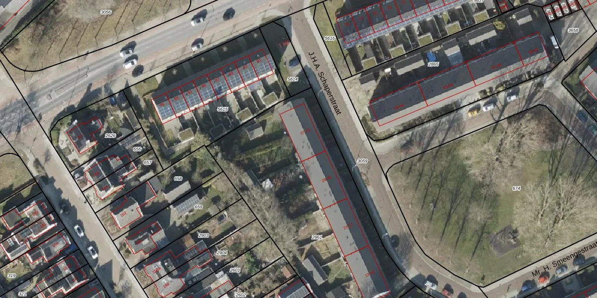 Het perceel waarop J.H.A. Schaperstraat 39 staat heeft een oppervlakte van 2591 m². Dit is een zeer groot perceel. De perceeloppervlakte wordt geregistreerd door het Kadaster. Gedetailleerde informatie over de maten van dit perceel kunt u vinden in het rapport Kadastrale kaart met maatvoering van J.H.A. Schaperstraat 39.
