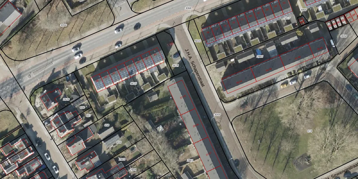 Het perceel waarop J.H.A. Schaperstraat 43 staat heeft een oppervlakte van 2591 m². Dit is een zeer groot perceel. De perceeloppervlakte wordt geregistreerd door het Kadaster. Gedetailleerde informatie over de maten van dit perceel kunt u vinden in het rapport Kadastrale kaart met maatvoering van J.H.A. Schaperstraat 43.