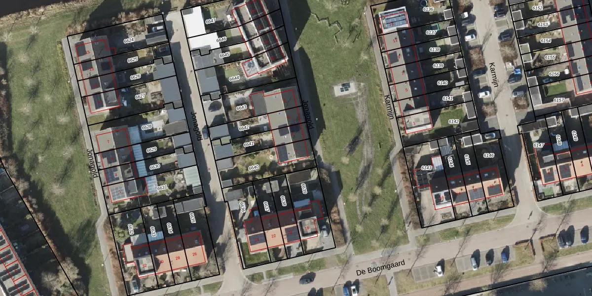 Het perceel waarop Jonagold 2 staat heeft een oppervlakte van 321 m². Dit is een groot perceel. De perceeloppervlakte wordt geregistreerd door het Kadaster. Gedetailleerde informatie over de maten van dit perceel kunt u vinden in het rapport Kadastrale kaart met maatvoering van Jonagold 2.