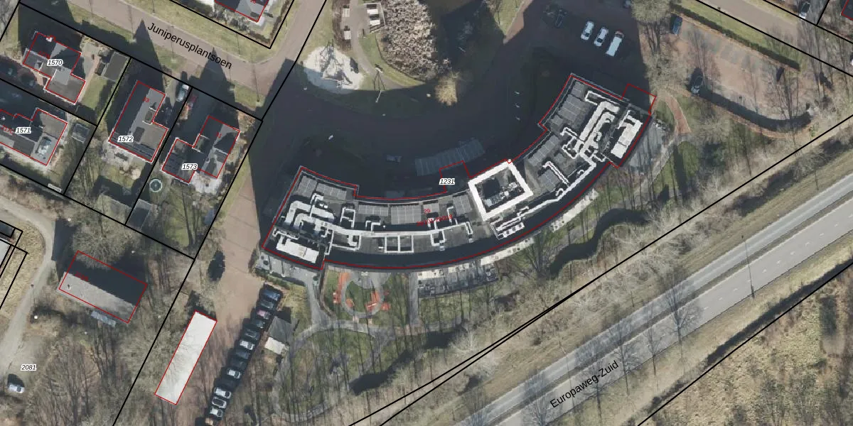 Het perceel waarop Juniperusplantsoen 29-301 staat heeft een oppervlakte van 1,3 ha. Dit is een zeer groot perceel. De perceeloppervlakte wordt geregistreerd door het Kadaster. Gedetailleerde informatie over de maten van dit perceel kunt u vinden in het rapport Kadastrale kaart met maatvoering van Juniperusplantsoen 29-301.
