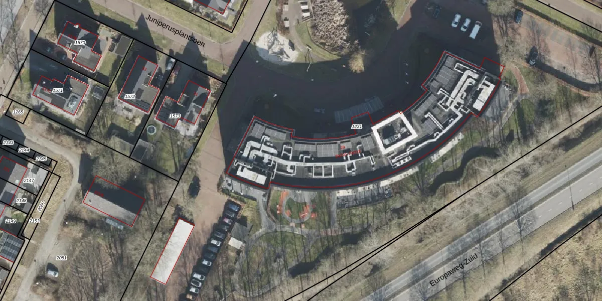 Het perceel waarop Juniperusplantsoen 29-302 staat heeft een oppervlakte van 1,3 ha. Dit is een zeer groot perceel. De perceeloppervlakte wordt geregistreerd door het Kadaster. Gedetailleerde informatie over de maten van dit perceel kunt u vinden in het rapport Kadastrale kaart met maatvoering van Juniperusplantsoen 29-302.