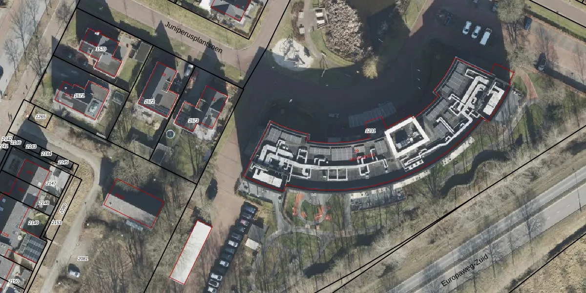 Het perceel waarop Juniperusplantsoen 29-303 staat heeft een oppervlakte van 1,3 ha. Dit is een zeer groot perceel. De perceeloppervlakte wordt geregistreerd door het Kadaster. Gedetailleerde informatie over de maten van dit perceel kunt u vinden in het rapport Kadastrale kaart met maatvoering van Juniperusplantsoen 29-303.