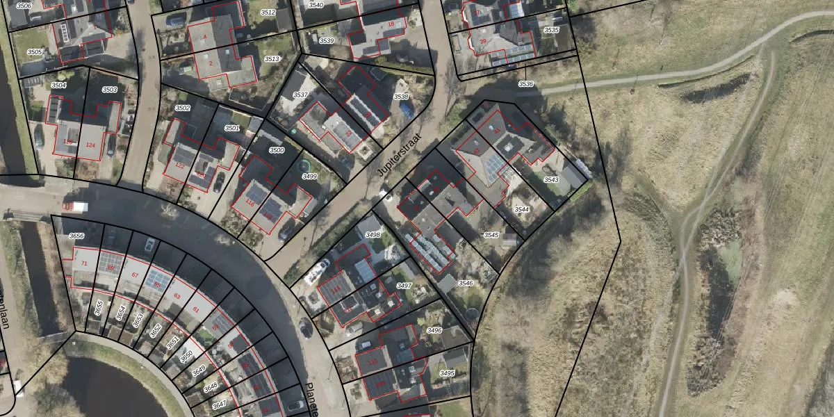 Het perceel waarop Jupiterstraat 47 staat heeft een oppervlakte van 454 m². Dit is een groot perceel. De perceeloppervlakte wordt geregistreerd door het Kadaster. Gedetailleerde informatie over de maten van dit perceel kunt u vinden in het rapport Kadastrale kaart met maatvoering van Jupiterstraat 47.