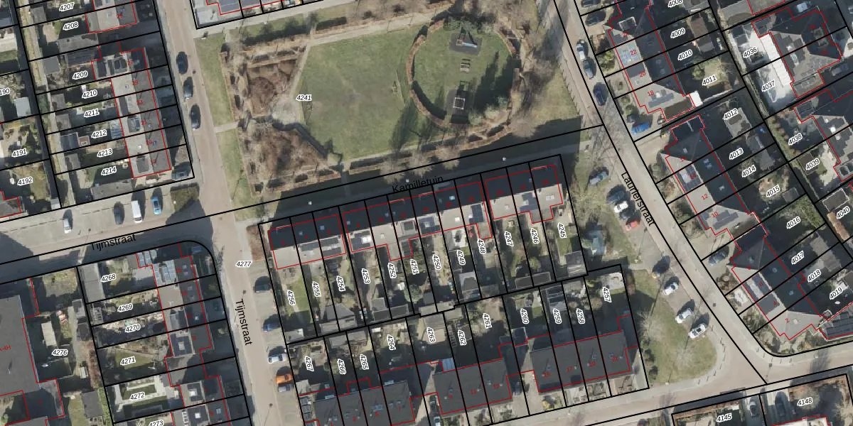 Het perceel waarop Kamilletuin 14 staat heeft een oppervlakte van 160 m². Dit is een middelgroot perceel. De perceeloppervlakte wordt geregistreerd door het Kadaster. Gedetailleerde informatie over de maten van dit perceel kunt u vinden in het rapport Kadastrale kaart met maatvoering van Kamilletuin 14.