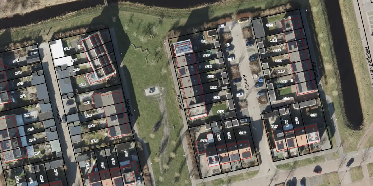Het perceel waarop Karmijn 5 staat heeft een oppervlakte van 151 m². Dit is een middelgroot perceel. De perceeloppervlakte wordt geregistreerd door het Kadaster. Gedetailleerde informatie over de maten van dit perceel kunt u vinden in het rapport Kadastrale kaart met maatvoering van Karmijn 5.