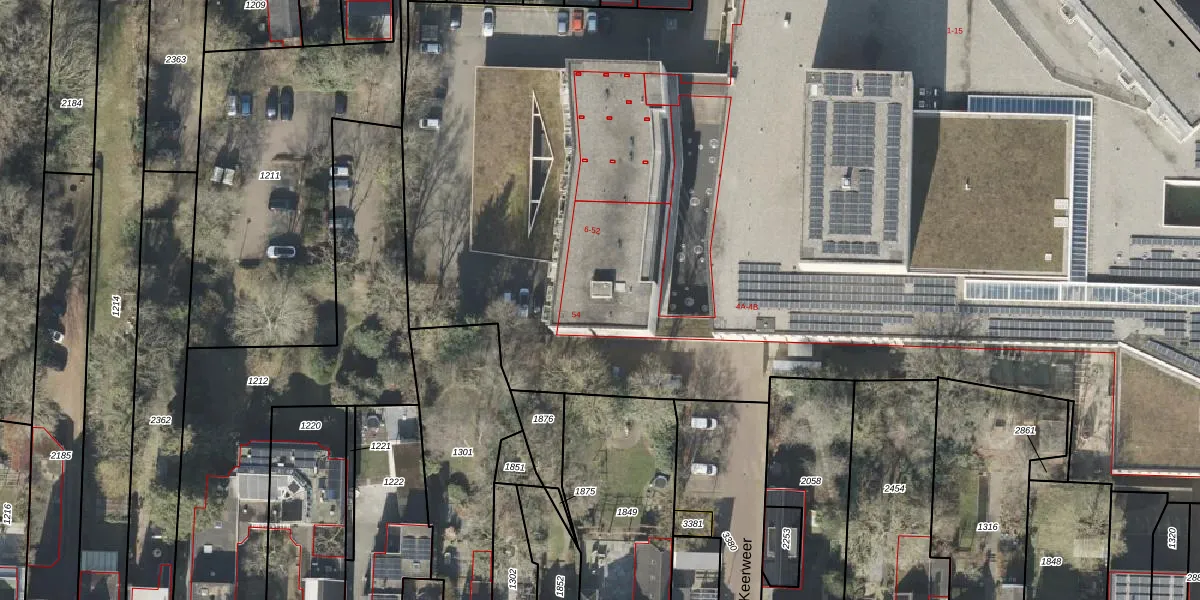 Het perceel waarop Keerweer 42 staat heeft een oppervlakte van 1,4 ha. Dit is een zeer groot perceel. De perceeloppervlakte wordt geregistreerd door het Kadaster. Gedetailleerde informatie over de maten van dit perceel kunt u vinden in het rapport Kadastrale kaart met maatvoering van Keerweer 42.