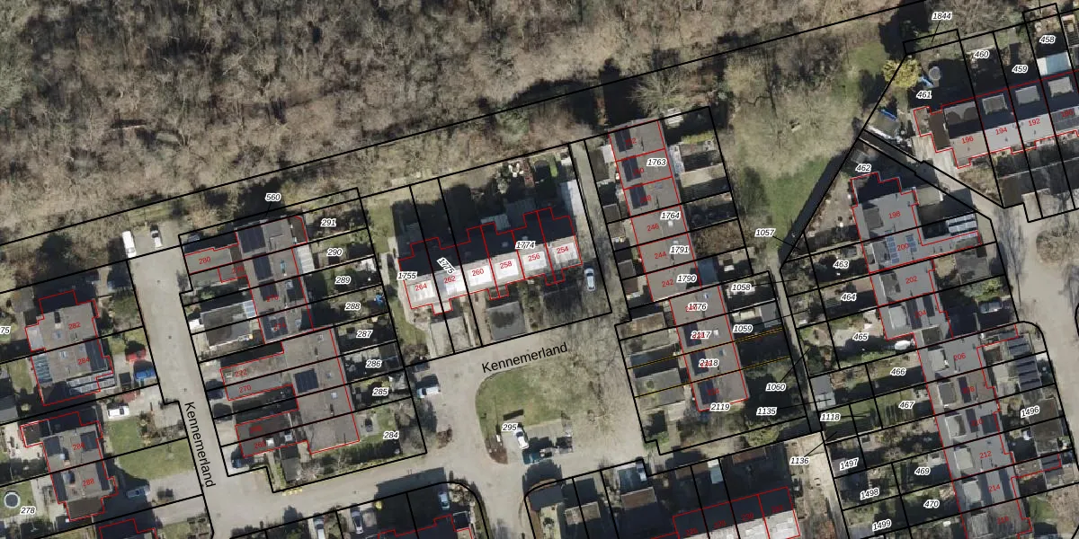 Het perceel waarop Kennemerland 256 staat heeft een oppervlakte van 801 m². Dit is een groot perceel. De perceeloppervlakte wordt geregistreerd door het Kadaster. Gedetailleerde informatie over de maten van dit perceel kunt u vinden in het rapport Kadastrale kaart met maatvoering van Kennemerland 256.
