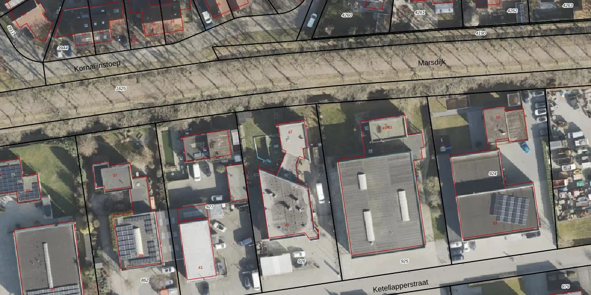 Het perceel waarop Ketellapperstraat 47 staat heeft een oppervlakte van 1682 m². Dit is een zeer groot perceel. De perceeloppervlakte wordt geregistreerd door het Kadaster. Gedetailleerde informatie over de maten van dit perceel kunt u vinden in het rapport Kadastrale kaart met maatvoering van Ketellapperstraat 47.