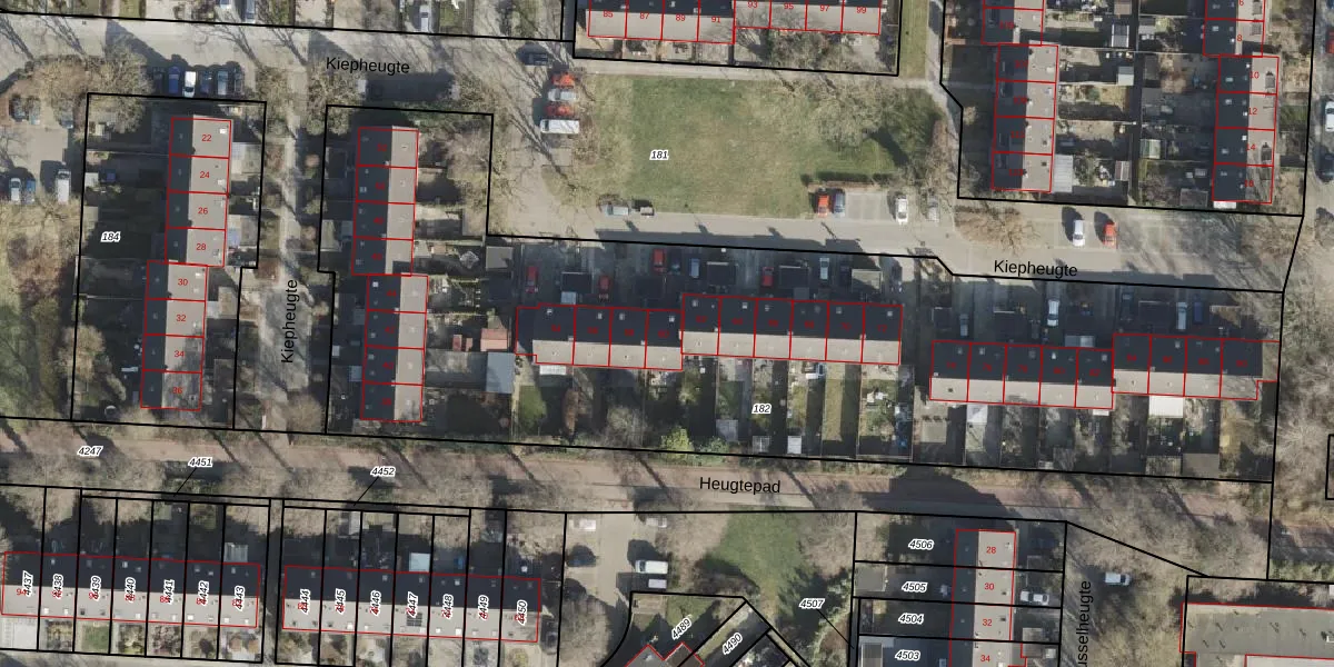 Het perceel waarop Kiepheugte 60 staat heeft een oppervlakte van 4760 m². Dit is een zeer groot perceel. De perceeloppervlakte wordt geregistreerd door het Kadaster. Gedetailleerde informatie over de maten van dit perceel kunt u vinden in het rapport Kadastrale kaart met maatvoering van Kiepheugte 60.