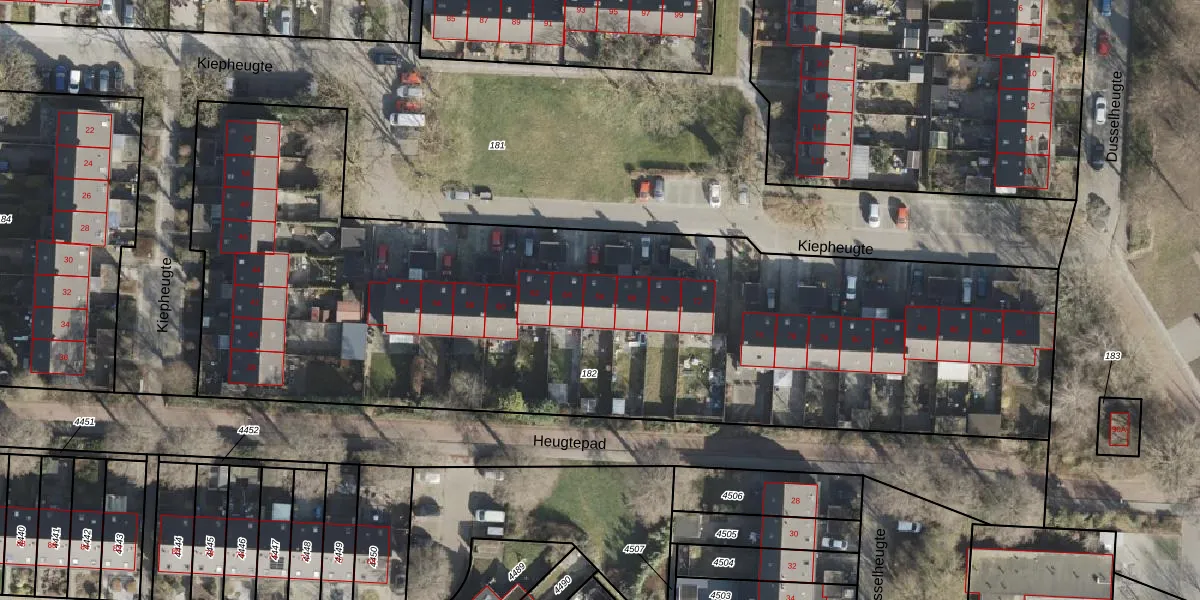 Het perceel waarop Kiepheugte 66 staat heeft een oppervlakte van 4760 m². Dit is een zeer groot perceel. De perceeloppervlakte wordt geregistreerd door het Kadaster. Gedetailleerde informatie over de maten van dit perceel kunt u vinden in het rapport Kadastrale kaart met maatvoering van Kiepheugte 66.
