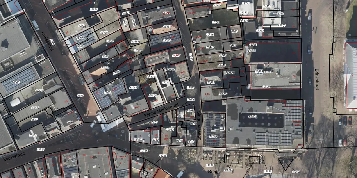 Het perceel waarop Kleine Marktstraat 2-A staat heeft een oppervlakte van 42 m². Dit is een klein perceel. De perceeloppervlakte wordt geregistreerd door het Kadaster. Gedetailleerde informatie over de maten van dit perceel kunt u vinden in het rapport Kadastrale kaart met maatvoering van Kleine Marktstraat 2-A.