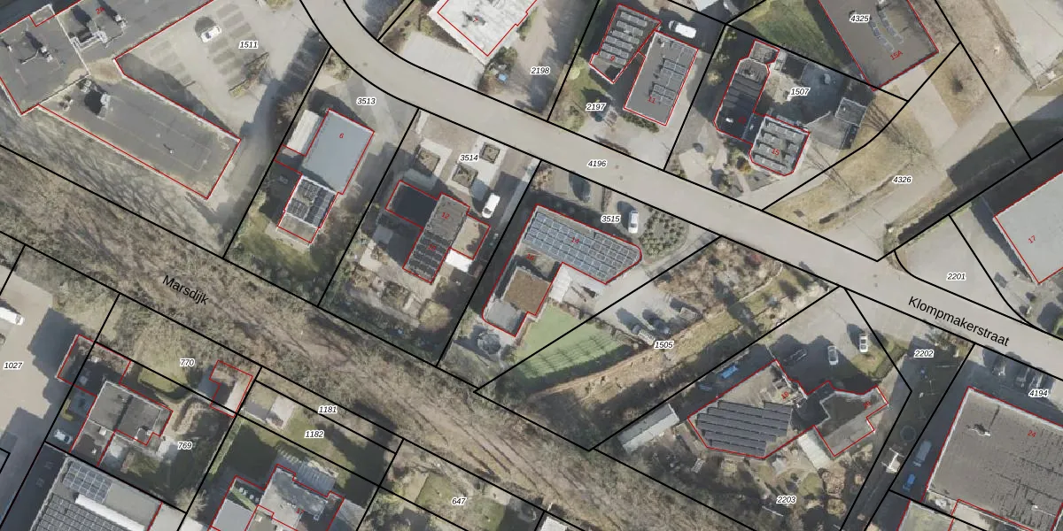 Het perceel waarop Klompmakerstraat 16 staat heeft een oppervlakte van 1015 m². Dit is een zeer groot perceel. De perceeloppervlakte wordt geregistreerd door het Kadaster. Gedetailleerde informatie over de maten van dit perceel kunt u vinden in het rapport Kadastrale kaart met maatvoering van Klompmakerstraat 16.