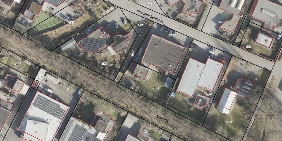 Het perceel waarop Klompmakerstraat 22 staat heeft een oppervlakte van 688 m². Dit is een groot perceel. De perceeloppervlakte wordt geregistreerd door het Kadaster. Gedetailleerde informatie over de maten van dit perceel kunt u vinden in het rapport Kadastrale kaart met maatvoering van Klompmakerstraat 22.