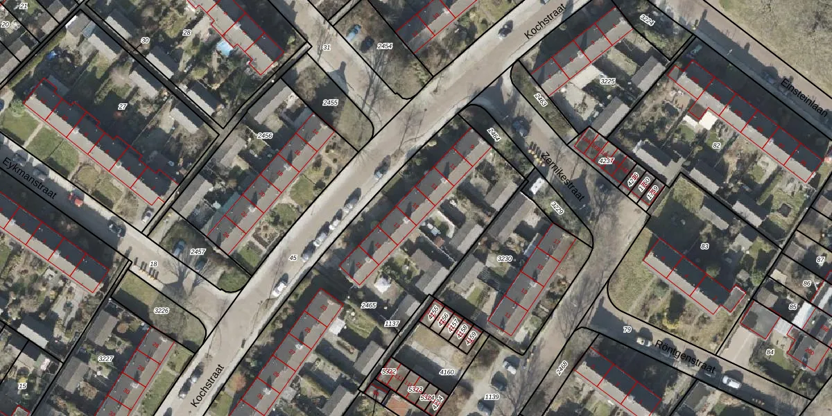 Het perceel waarop Kochstraat 15 staat heeft een oppervlakte van 2412 m². Dit is een zeer groot perceel. De perceeloppervlakte wordt geregistreerd door het Kadaster. Gedetailleerde informatie over de maten van dit perceel kunt u vinden in het rapport Kadastrale kaart met maatvoering van Kochstraat 15.