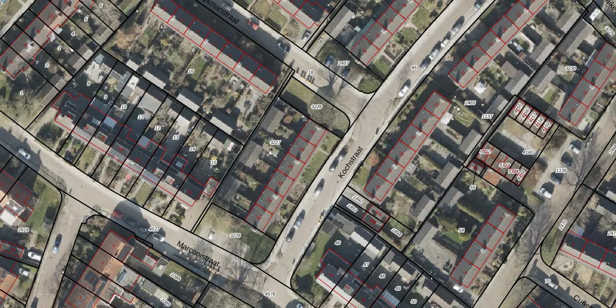 Het perceel waarop Kochstraat 28 staat heeft een oppervlakte van 1009 m². Dit is een zeer groot perceel. De perceeloppervlakte wordt geregistreerd door het Kadaster. Gedetailleerde informatie over de maten van dit perceel kunt u vinden in het rapport Kadastrale kaart met maatvoering van Kochstraat 28.