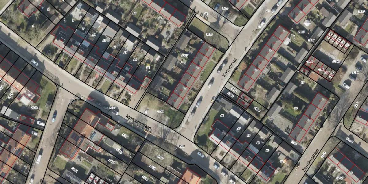 Het perceel waarop Kochstraat 34 staat heeft een oppervlakte van 1009 m². Dit is een zeer groot perceel. De perceeloppervlakte wordt geregistreerd door het Kadaster. Gedetailleerde informatie over de maten van dit perceel kunt u vinden in het rapport Kadastrale kaart met maatvoering van Kochstraat 34.